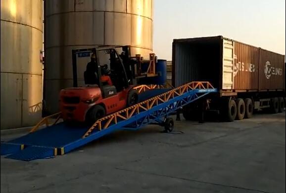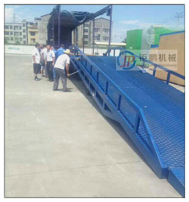 移動式液壓登車橋廣泛用于無裝卸設備的貨臺以及流動裝卸場所,是與叉車配合使用的貨物裝卸輔助工具,借助該設備,叉車能直接駛入汽車車廂內部進行批量裝卸作業。只需單人操作,不需動力電源,即可實現貨物的安全快速裝卸。即可使您減輕勞動強度,又能成倍提高裝卸作業效率,加快物料流通速度,獲取更大經濟效益。