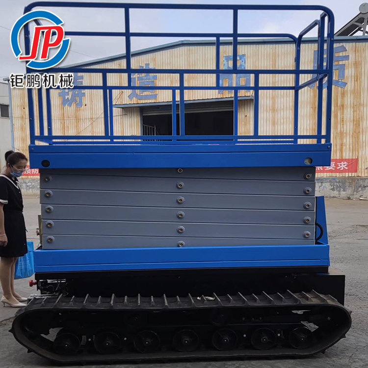 履帶升降機也可叫做履帶式升降平臺,履帶在與地面接觸的一面有加強防滑筋,以提高履帶板的堅固性和履帶與地面的附著力。能爬陡坡,越寬壕,涉深水,克垂壁,穿沼澤,過田野,履帶高空作業(yè)平臺是為野外復雜路況下高空作業(yè)設計的一種升降平臺,它適應環(huán)境能力特別強,能在野外無電源,路況復雜的情況下進行作業(yè)使用;履帶接地面積大,通過性好,適應性強,可帶載行走,適用于建筑工地的吊裝作業(yè)。