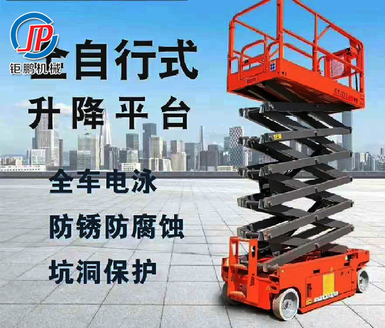 自行走升降機又稱:全自動自行走式升降機 自行走電動升降平臺車 自動行走升降平臺 移動升降平臺 自行走電動升降平臺 直流電動驅動輪具有自鎖功能...