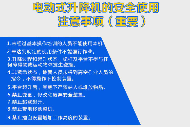 四:安全性高,采用上下雙控安全低壓操作按鈕,配備一鍵式緊急停止及意外失去電源的應(yīng)急下降裝置,提高了設(shè)備的安全性。
